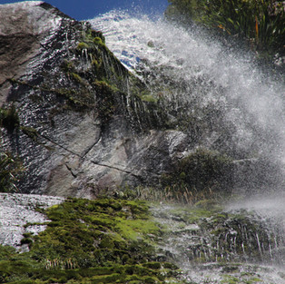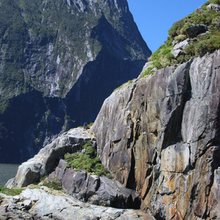 Weather for the next day was set fair and it was time to make a decision about Milford Sound. After the cyclone about five weeks ago the main road to the sound was open but only to convoys and buses. So we decided to take a flight to Milford, take the boat and then fly back. We had to ring to find if the flight would be going about an hour beforehand and when the receptionist said "just hang on and I'll check with the pilot" we began to wonder what we were letting ourselves into. We got to the small airport and saw our little four seater. We had to be weighed - not good after 8 weeks holiday!!!!.... and our pilot Stuart gave us our safety briefing and life jackets - what no parachutes?? . We took off from a small runway in the valley and were soon soaring above the mountains and glaciers before heading along the coast and into the sound. We started to relax when I asked Stuart how long he had been doing the job and he told us that he was an instructor for the New Zealand Air Force just doing these trips whilst taking a holiday. I really don't have the words to describe what a fantastic day it was especially up in the air - even Maureen, who was worried before we took off was smiling. Although we both did wonder when Stuart started looking at a map!!! Weather in the sound was beautiful and as there had been some rain, the falls were better than we expected.